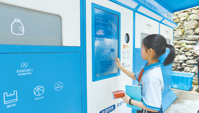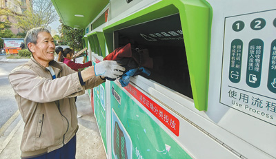 “自从小区配备了智能回收箱,大家参与回收的积极性就高了起来。只要手机一扫,就可快速‘变废为宝’,这种便民惠民的回收方式,大大提升了社区居民参与废旧物资清理与回收活动的热情。”近日,江苏泰兴市元竹镇大元社区居民丁正平说,用微信扫码后,回收仓门自动开启,将废纸板、易拉罐、塑料瓶投入进去以后,系统会自动识别并进行分类,按照1.2元/公斤称重计价,累积到30元时可以直接提现到积分账户,兑换大米、食用油等。